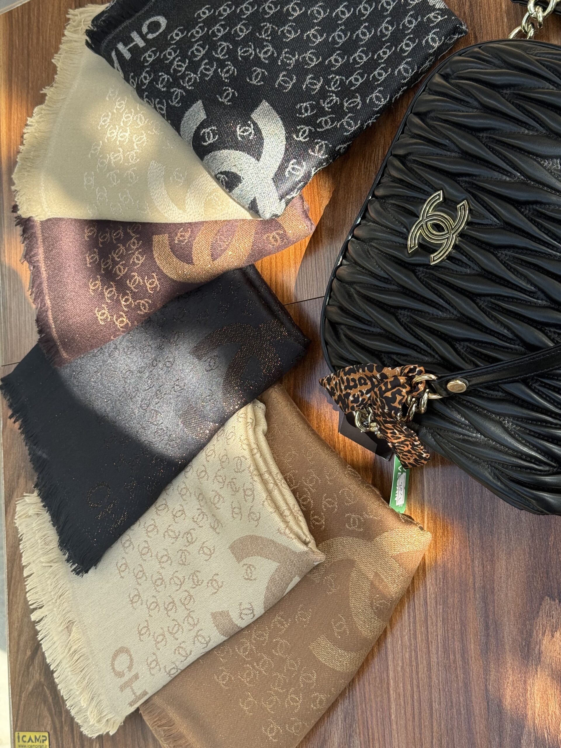 شالهای جدید و لاکچری طرح Chanel با بافت لطیف و درخشش خاص، مناسب فصل پاییز و زمستان.