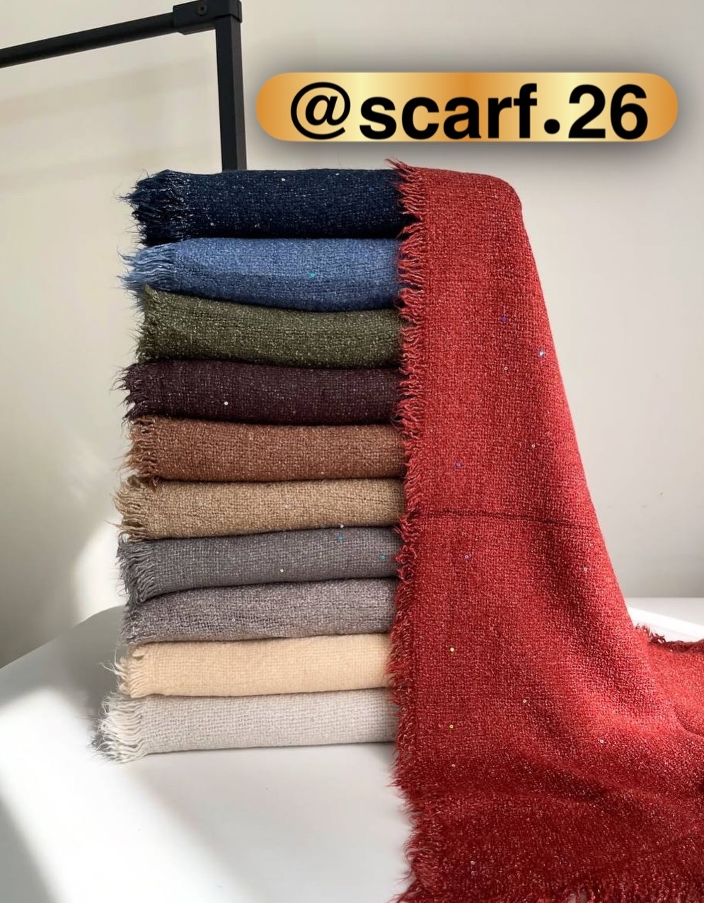 شال لمهای پرزدار شایندار – مدل ویژه پاییزه زمستانهشال لمهای پرزدار با بافت گرم، ریشههای مخملی و لمههای ریز درخشان. مناسب استایلهای پاییزهزمستانه و ارائهشده در چند رنگ جذاب.